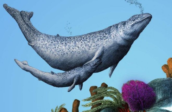 特提斯海在地壳运动的作用下变浅了,丰富的阳光让微生物增加,鱼类资源丰富,食物把游走鲸吸引向浅海,虽然这里有鲨鱼。 于是游走鲸进化成了更为适应浅海活动的【罗德侯鲸】。 罗德侯鲸“新增了一下“技能”: 1.肾不亏,淡定喝海水,从此定居海底不上陆。 2.四肢构造改变,游泳技能+1级。 3.鲸鱼专属的特殊耳骨,旋转不眩晕,闪避技能+5级,通过拐弯躲过了鲨鱼的追杀活了下来。