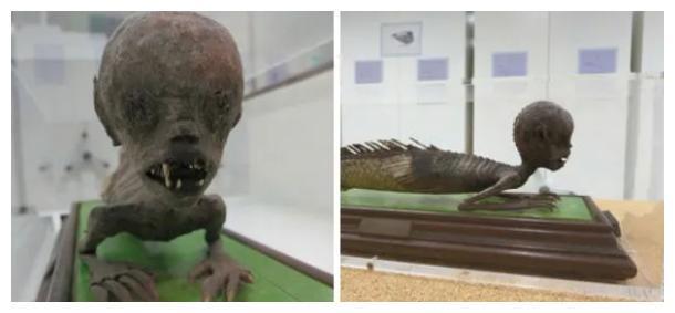 英国自然科学博物馆的美人鱼标本…雕塑,这条美人鱼下半身长的像是太平洋濑鱼,上半身像是雕刻,鱼鳄也长进了嘴里……