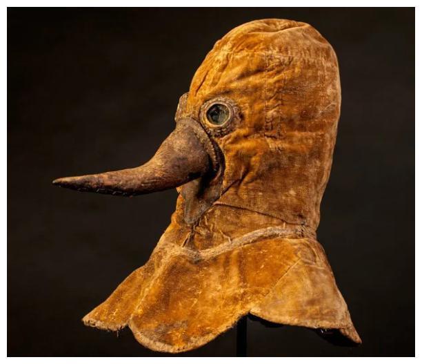 德国历史博物馆里的中世纪医生的“口罩”,而且不是给一般医生的装备,是专门救治瘟疫病人的医生。