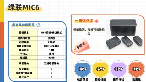 绿联MIC6在入门级无线麦克风圈堪称“国民好麦”。没有浮夸的功能噱头,却凭借清晰收音、智能降噪与高适配性,成为新手创作者的安心之选。很多短视频博主、线上教师、家庭记录用户都把它当作“日常装备”,原因归结为三个字:稳、省、好用。