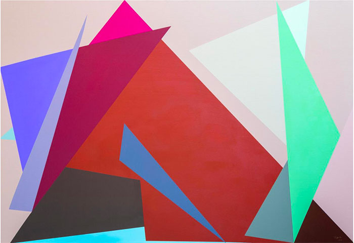 司建伟,《抽象》NO.15,布面尊龙凯时亚克力,110×160×4cm,2023年;作品由一张张发生在我们当下世界的现实照片转换而来,艺术家把照片在计算机中转换出最简化的图像,再用画布和颜料以传统绘画的形式呈现出来