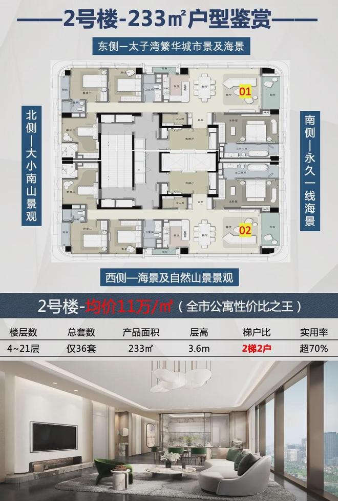 稀缺纯大平层(233-307㎡)公寓产品,为塔尖人物量身定制,打造高端纯粹顶贵圈层。?