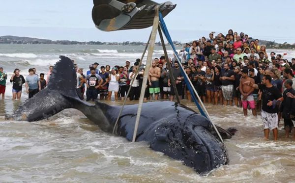 由于鲸类没有四肢支撑身体,搁浅时胸腔腹腔会承受很大的压力。因此要尽可能在使其在浅水里,借助浮力来支撑身体;