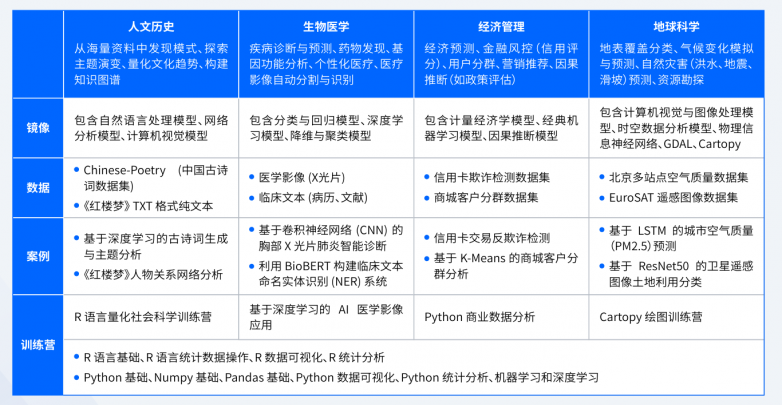 在专业课教学与 AI 实验室建设方面,基于智学一体机,和鲸已助力山东大学实现数字人文实验室数字人文教科研一体平台完成全面 AI 化升级,打造了集教学、科研与双创竞赛功能于一体的综合智能基座,聚焦人文学者实际需求,通过四大核心能力升级,实现教学科研深度融合,为数字人文领域注入新活力。在医科+AI领域,北京中医药大学作为全国首个“大数据+医学”本科专业院校,携手和鲸建设医疗人工智能实验室,投入使用一年来累计支撑超过 20000 机时的实践实训教学,通过科研反哺教学,本科生一作发表 SCI 5 篇、核心期刊 7 篇,成果实现产业化应用。