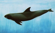 别名:多齿瓜头鲸。形态特征 头椭圆,无吻突,前端尖,上颌不突出于下颌。背鳍位于体中部,较伪虎鲸的宽大,高达30厘米,前缘向后倾,末端钝。鳍肢长为体长的1/6,末端尖。体暗灰至黑褐色,上下唇白色,眼周围为暗色区,有浓色带沿体背正中线由头延伸至背鳍,并在背鳍下方扩大成弧形暗色区,喉部有白斑,脐至肛门附近为灰白色。上、下颌每侧具齿20-25枚。体长可达2.75米,最大体重约275公斤。初生仔鲸体长约1米以下.热带性种,常成数十头至数百头的群,游泳速度快。时有集群搁戏。我国南海、台湾省海域均有分布。
