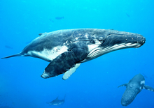 别名:大翅鲸、驼背鲸、巨臂鲸。体肥大,上颁广阔,由呼吸孔至吻端沿中央线,以及上下须两侧有瘤状突起。背鳍相对小,位体后身长的2/3处。鳍肢非常大,约为体长的1/3,为鲸类中最大者,其前缘具不规则的瘤状突如锯齿状。尾鳍宽大,外缘亦呈不规则钳齿状。