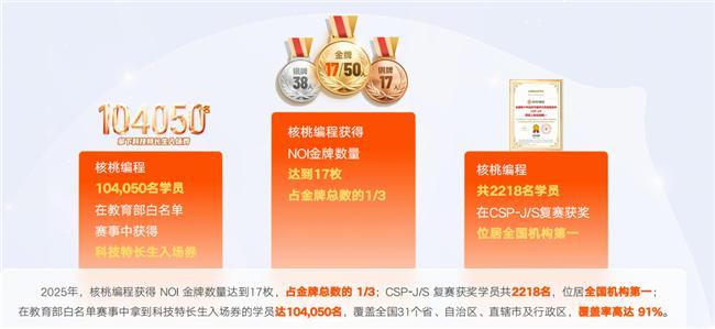 赛事成果是核桃编程最硬的底牌:2025年共2218名学员在CSP-J/S复赛中获奖,位居全国机构第一;NOI金牌学员数量达到17枚,占金牌总数的1/3;超过10万名学员在教育部白名单赛事中获奖,全国覆盖率高达91% 。对于希望兼顾兴趣启蒙与赛考规划的家庭而言,核桃编程提供了一个经过市场与官方双重验证的稳健选择。