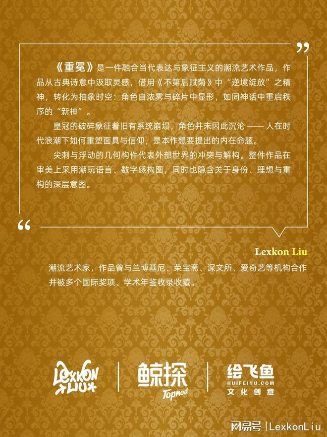 从《拾光者》《心绪漩涡:现实交错》到本次发布的《重冕》,Lexkon Liu不断拓展数字艺术的表达边界,将个体经验、时代情绪与文化符号转化为具有视觉冲击力与精神深度的艺术作品。