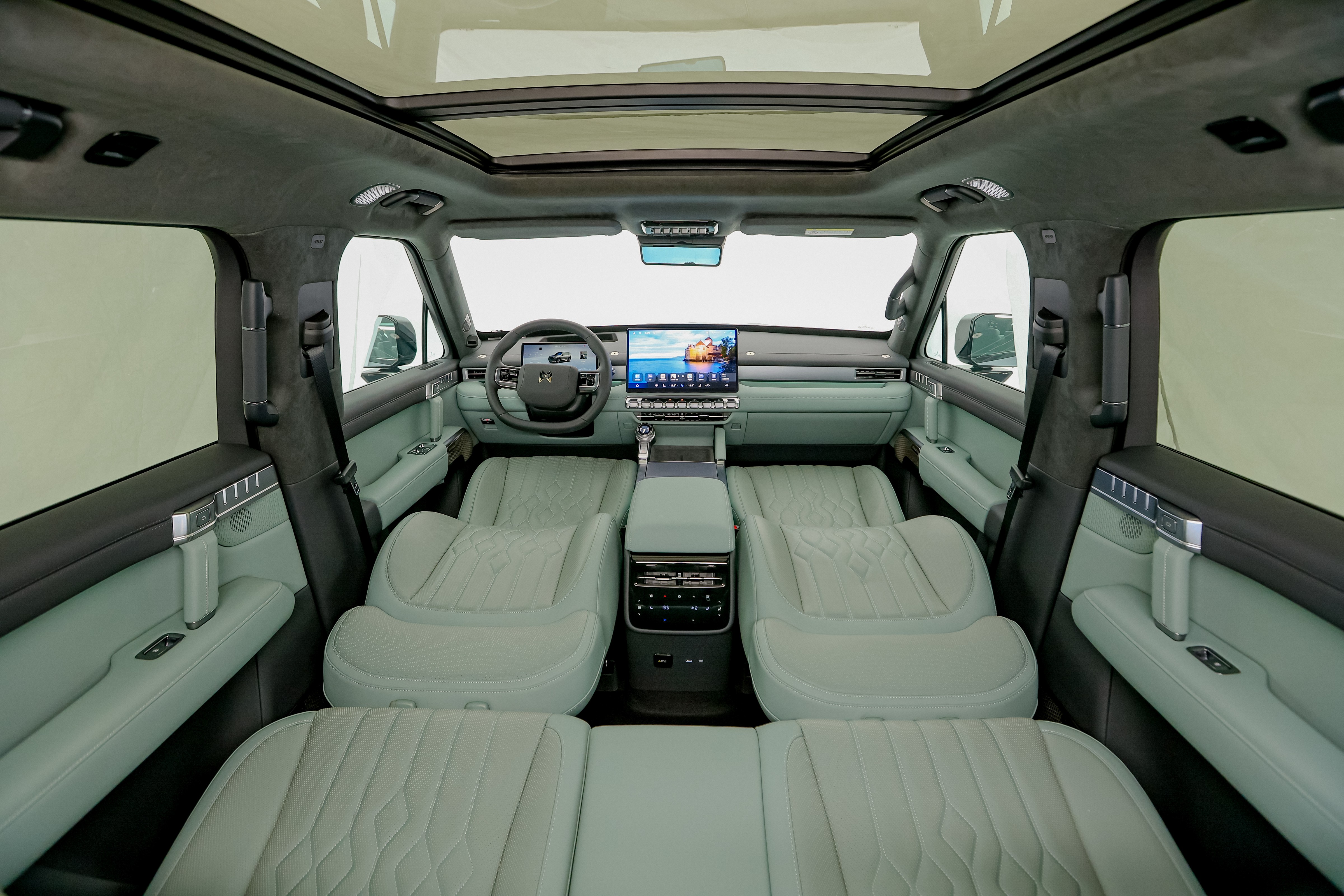 猛士M817“全感豪华”的露营适配能力,更是解决了阿尔金山野外驻留的核心需求。依托5100mm车长与3005mm轴距的越级表现,猛士M817打造“超享魔术空间”,第一排座椅放倒可衔接后排形成1.7米标准双床,第二排放平后与后备厢地毯组成2.1米舒享大床,秒变“午休舱”或“露营卧室”,可供科考工作者临时休憩;828L后备厢常规容积,放倒后排后最大拓展至2112L,可以放置帐篷、睡袋、灯具等一系列露营装备;同时猛士M817还支持全能拓展,预留20+拓展接口,车顶纵杠平台与侧挂网同样可以稳固搭载帐篷、睡袋、炊具等露营物资,避免车内空间杂乱。