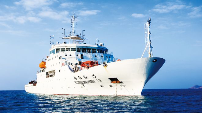 这艘名为“向阳红10”的科考船于2011年开工建设,2014年正式入列国家海洋调查船队,至今已执行了50多个调查航次任务,为我国海洋科考事业作出了重要贡献。尤其是在2016年,“向阳红10”船在航时间330多天,几乎全年都在海上,被称为“劳模”。