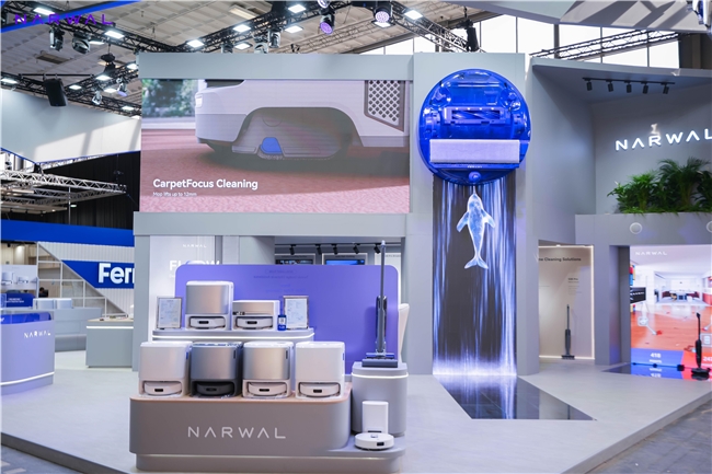 在刚刚结束的德国柏林国际消费电子展(IFA 2025)上,云鲸智能首次携旗下全系清洁产品阵容重磅登场,包括智能扫拖机器人、手持洗地机,吸尘器、除螨仪共计四大品类十二款产品。其中,高端旗舰新品扫拖机器人Narwal Flow不仅带来了履带热活水循环清洁的全新技术方案,而且针对海外家庭多地毯的地面环境,创新设计了深度地毯清洁功能,机器人上地毯后会自动增压吸尘,还支持二次清洁以清理深层垃圾,从而大幅提升地毯灰尘收集率,解决了传统扫地机在地毯场景不如吸尘器的问题,成为本届IFA展备受关注的明星产品。据了解,Narwal Flow于今年3月在国内上市,此后在 618 大促期间取得了活水履带洗地机器人品类行业第 一的成绩,8月在北美上市,9月4日在德、意、法三国同步开售。