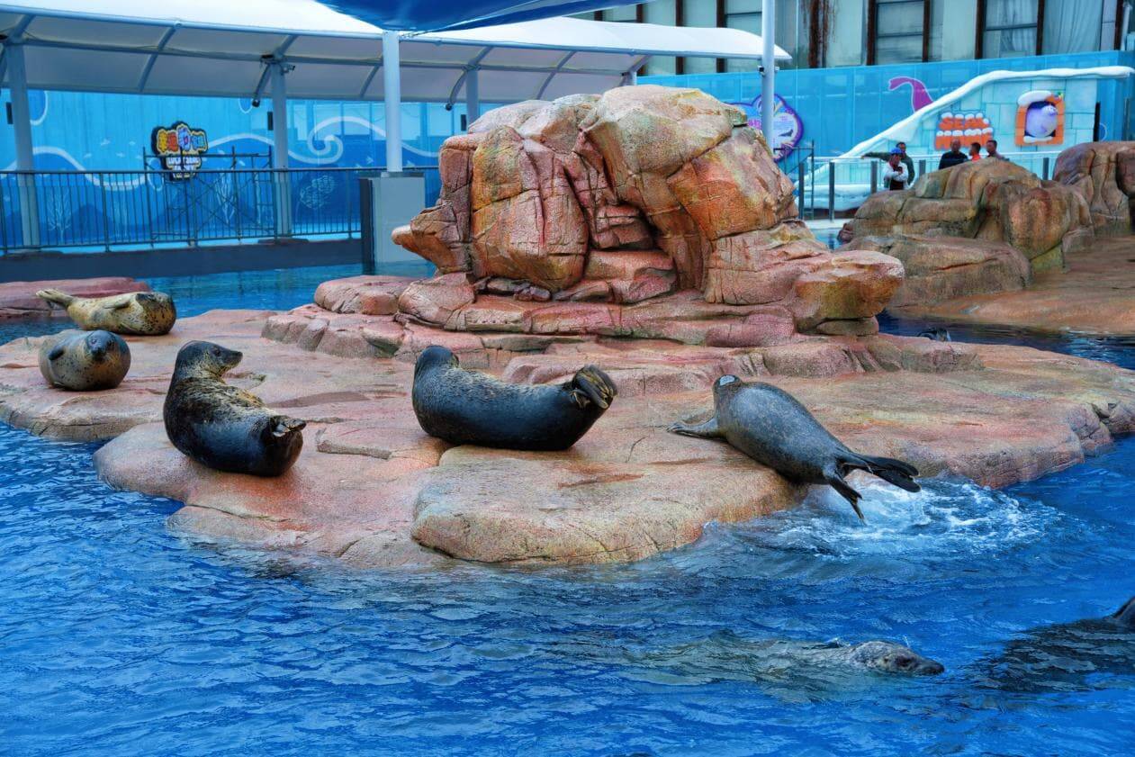 萌兽湾坐落于青岛海上摩天轮西侧,依托临海地理优势,通过露天开放式设计还原斑海豹的自然栖息环境,实现滨海景观与动物行为展示的完美融合。场馆内设置的无障碍观景平台,让游客能够近距离观察斑海豹休憩、嬉戏等自然状态。更令人期待的是,游客可以在专业饲养员的指导下化身“临时饲养员”,与斑海豹进行亲密互动,这种独特的体验为游客带来了前所未有的参与感。